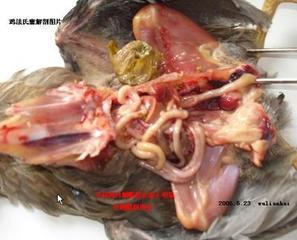 與白冠病(住卡式白細胞原蟲病):二者都可以引起胸腿肌出血。但是白冠病表現雞冠發白,內臟出血,心臟上有白色小結節。